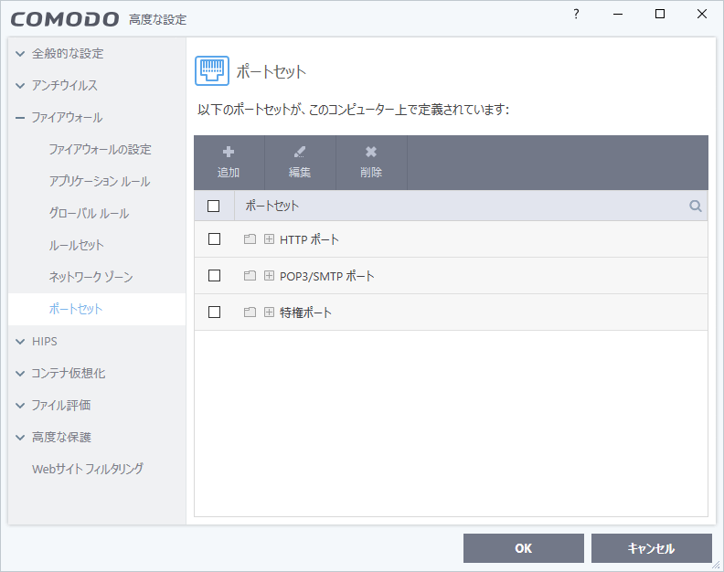 ファイアウォールの設定