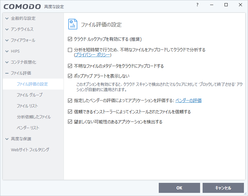 - OFFにすると不明ファイル全てに警告がでて少々煩わしい