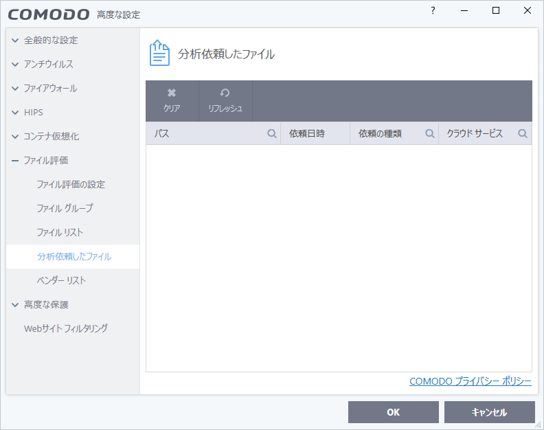 - Comodoのクラウドサービスに送信したファイルの履歴が表示される